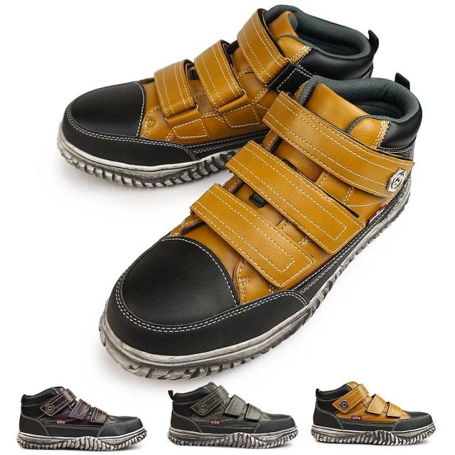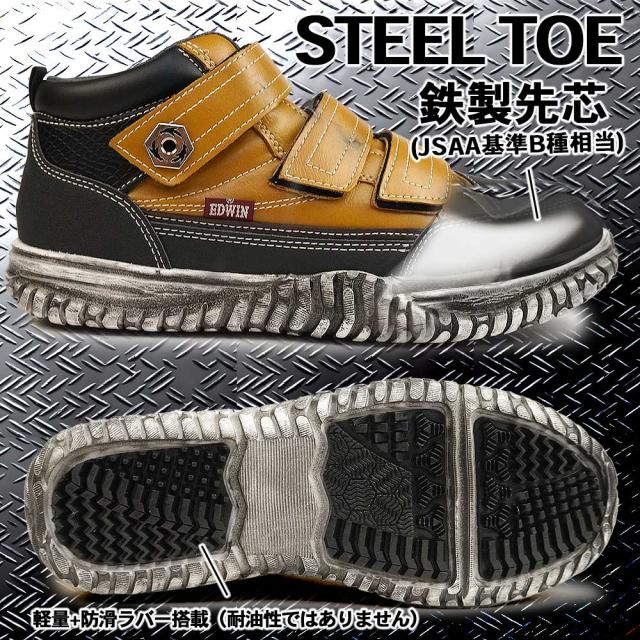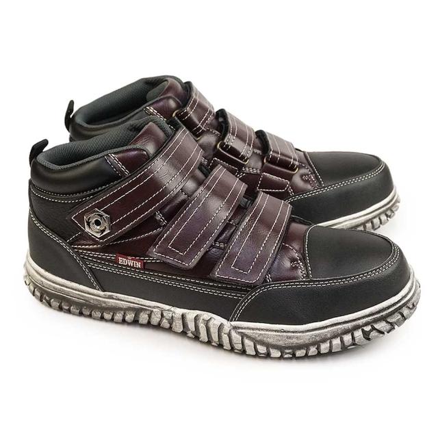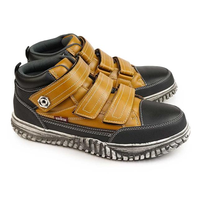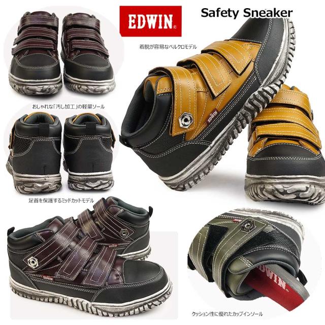エドウィン メンズ マジック ベルクロ 安全スニーカー セイフティーシューズ 軽作業 相互作業 作業靴 運送業y ミッドカット カジュアルシューズ 合皮 ブラック ブラウン ストリートスニーカー ワークシューズ