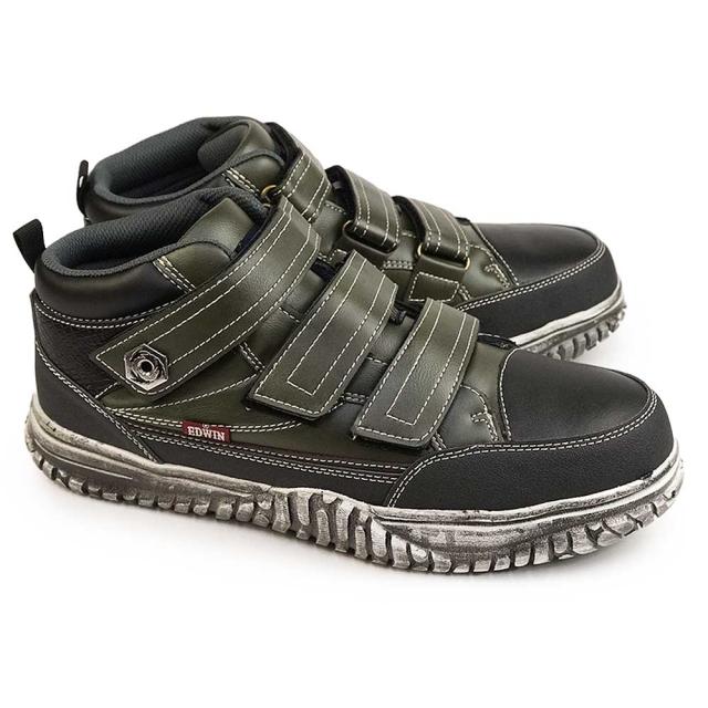 ファンション性と機能性を兼ね備えたエドウィンのセイフティースニーカー。つま先に鉄芯を搭載しつま先を衝撃から保護。アウトソールはビンテージな汚し加工を施し軽量ミッドソールにラバーを貼り付け防滑性を高めました。3本マジックモデルで着脱も容易。倉庫作業、運送業、軽作業に最適ながらおしゃれなストリートスニーカーとしても履ける万能モデル。見た目とは裏腹の驚異の軽量化と実現し軽快なクッション性と両立した履き心地でフィット感も抜群。安全スニーカーながらおしゃれなカラーリングでジーンズ、チノパンなどにも相性のよいミッドカットモデル。