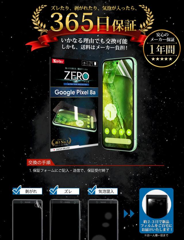 【365日完全保証】 Google Pixel 8a フィルム 湾曲まで覆える 4D 全面保護 保護フィルム フィルム 貼ったら消える魔法のフィルム 気泡ゼロ 2枚セット 極薄0.08mm 究極のさらさら感 衝撃吸収 OVER`s オーバーズ TP01