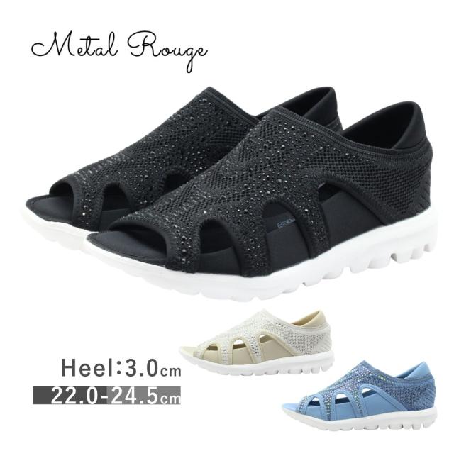 Metal Rouge メタルルージュ レディース シューズ 2142 オープントゥ メッシュ 軽量 軽い 靴 黒 白 ブラック アイボリー デニム