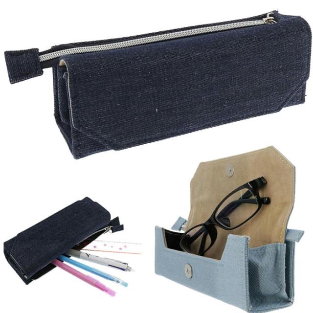 メガネモ ペンポーチ サンスター文具 ペンケース ライトブルー デニムブルー 眼鏡ケース 筆箱 meganemo
