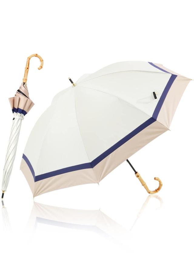 日傘 レディース クラシック 長傘・3色ミックスオフ×ベージュ 50cm