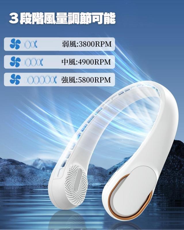 【風量70%アップ・360°送風首掛けファン】 .5000rpmの超高速モーターで60枚の高性能ファンブレードが風を集め、78個の送風口、360度の広風の首掛け扇風機は、風量を約70%増加させ、首周りや顔から全身まで360°立体的に冷却し、体感温度が瞬間に-10℃になります。暑さに合わせて3段階の風量調節が可能な強力ネックファン。弱風は海面を撫でるようにそっと吹き抜け、中風は森の中をかけめぐる風のようであり、強風は山の斜面に吹く大きく包み込む涼しいな風となります。