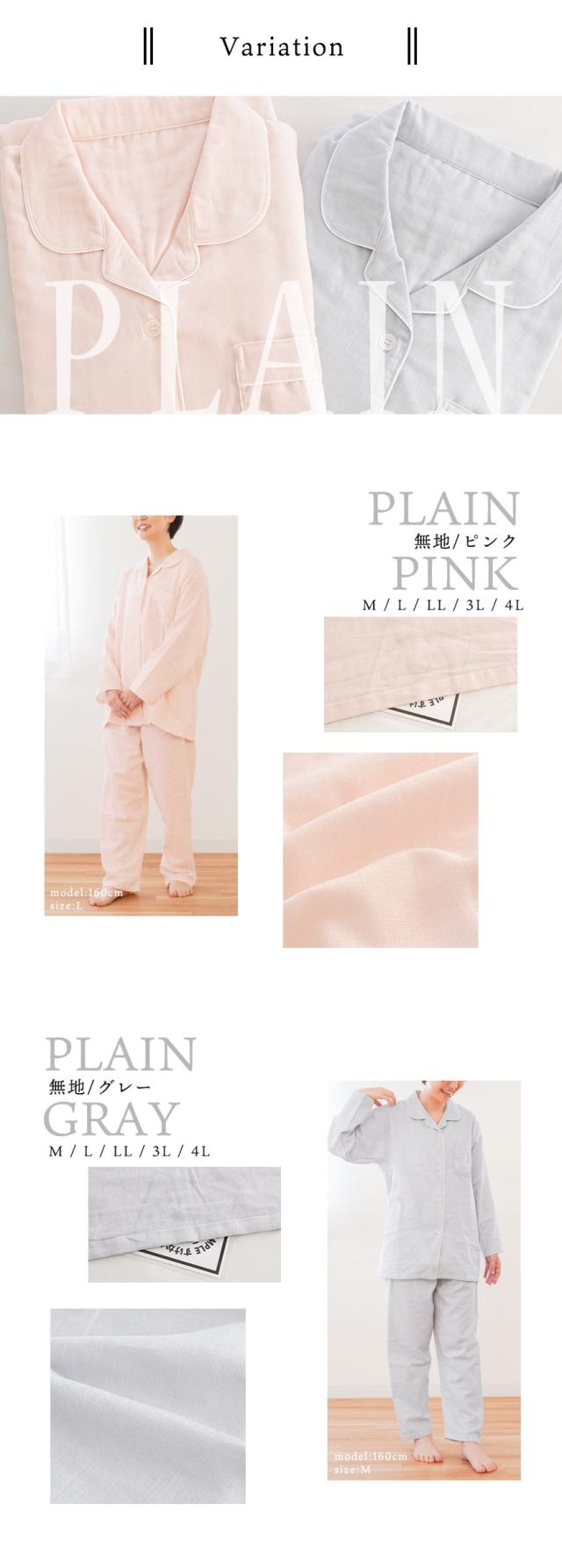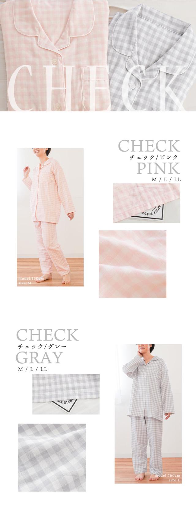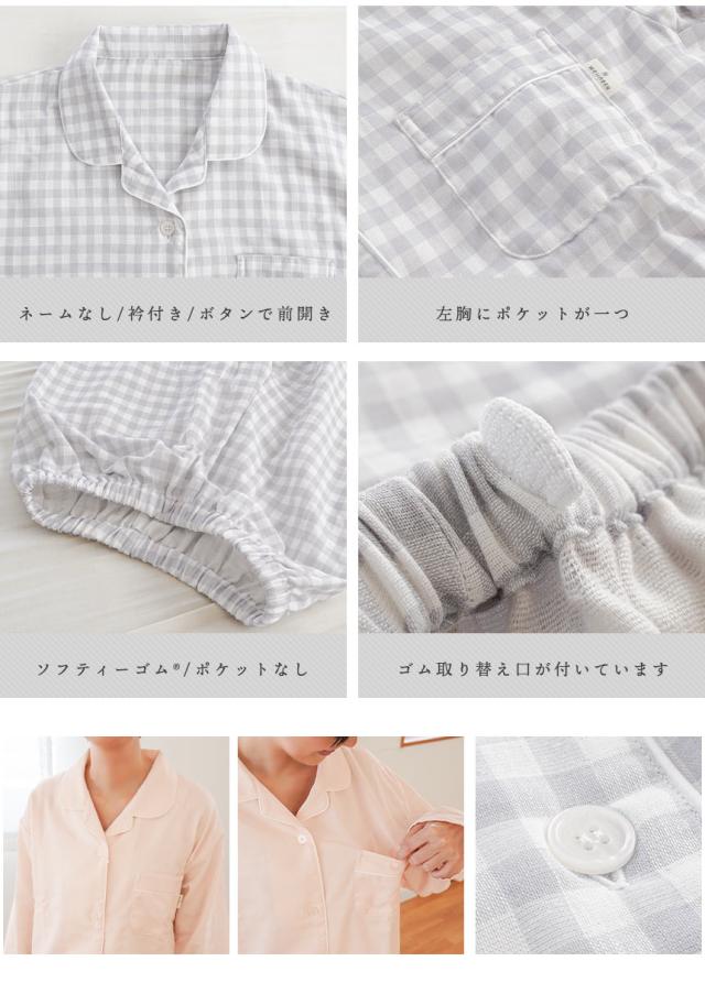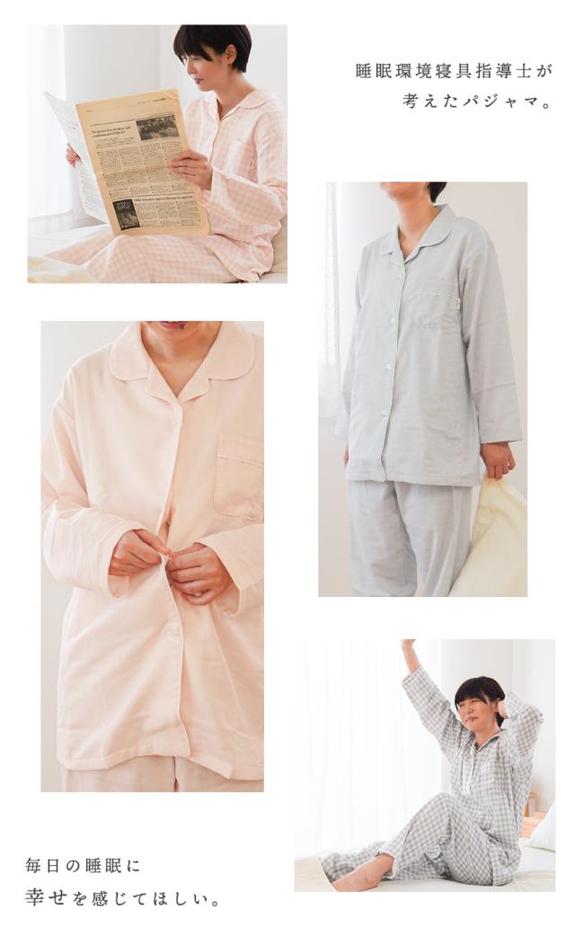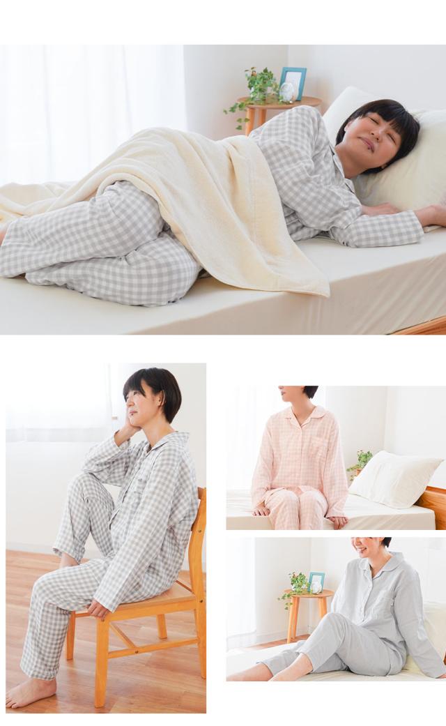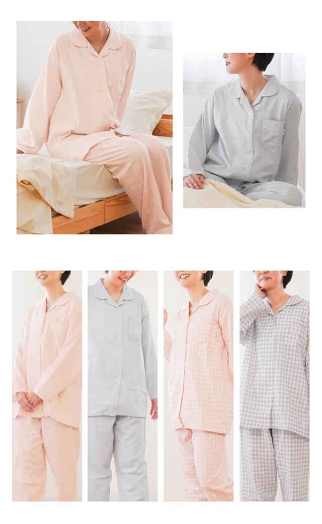 [ keyword | 当社限定品 パジャマ レディース wellneru 無撚糸 ファノン 2重ガーゼ 快眠 婦人 母の日 ギフト M L LL 3L 4L 綿100% コットン 日本製 春 夏 長袖 長ズボン 通気性 大きいサイズ ウェルネル 無地 チェック ピンク グレー ]