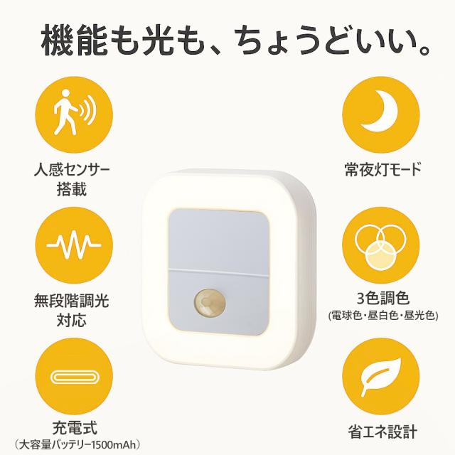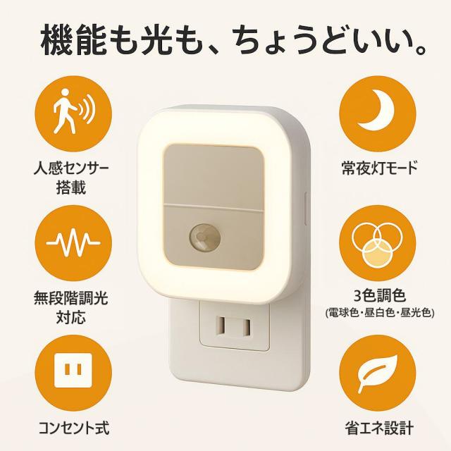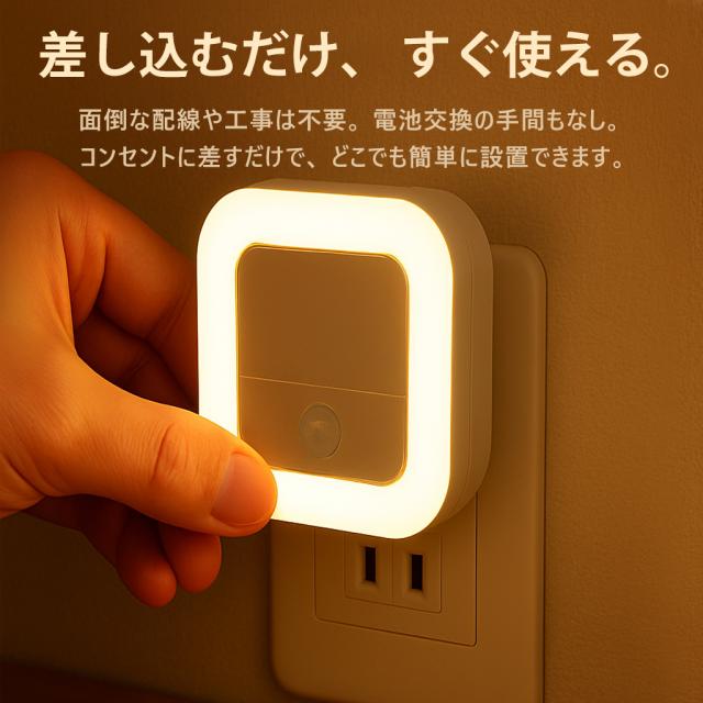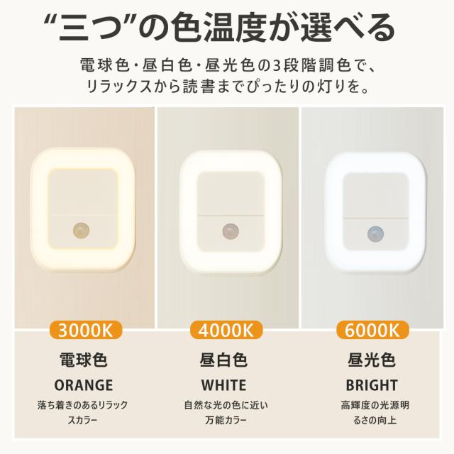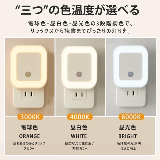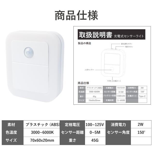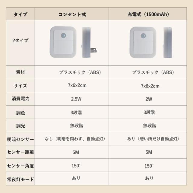 センサーライト LED 人感センサーライト コンセント式 充電式 常夜灯 室内 小型 足元ライト 調光調色 省エネ 玄関 廊下 トイレ 階段 明るい PSE認証済み