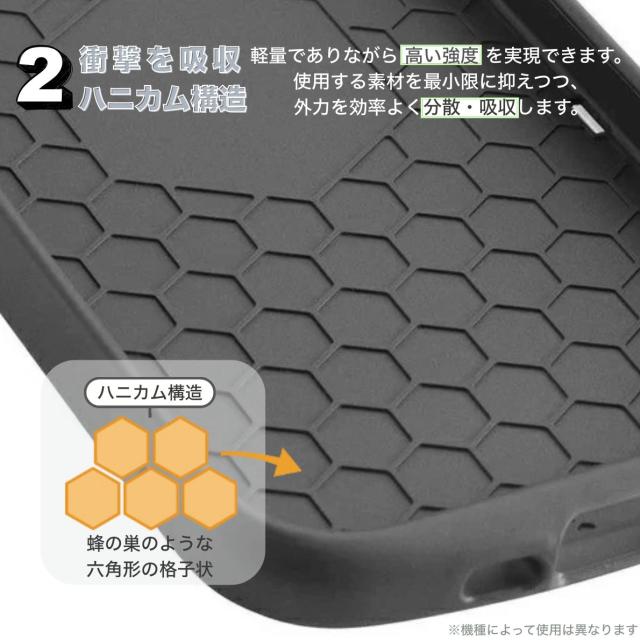 ケース内側のハニカム構造で衝撃から端末を護る。