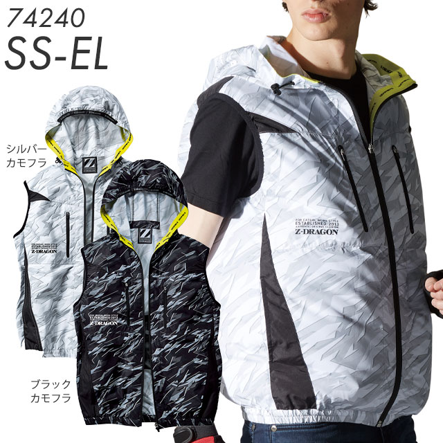 Z-DRAGON空調服ベスト フード付き 74240 シルバーカモフラ/ブラックカモフラ SS-ELサイズ 自重堂