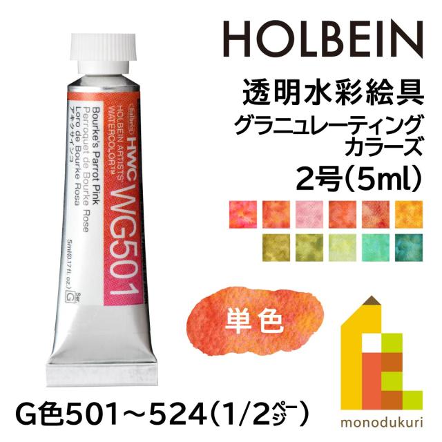 ホルベイン 透明水彩絵具2号(5ml) グラニュレーティングカラーズ 単色(G色WG501〜524)1/2ページ バラ売り (ネコポス可)