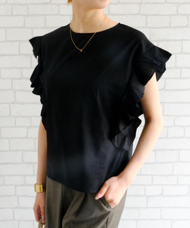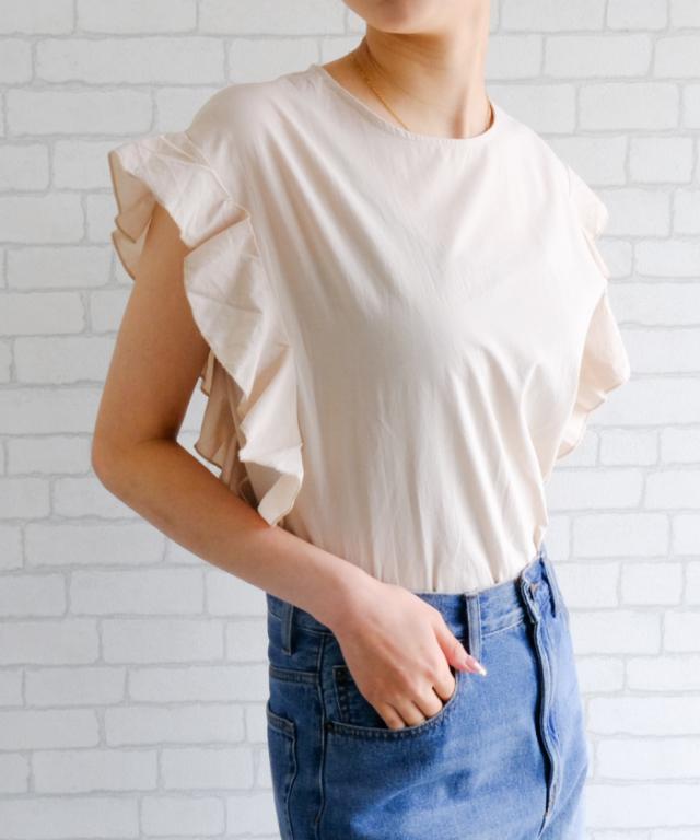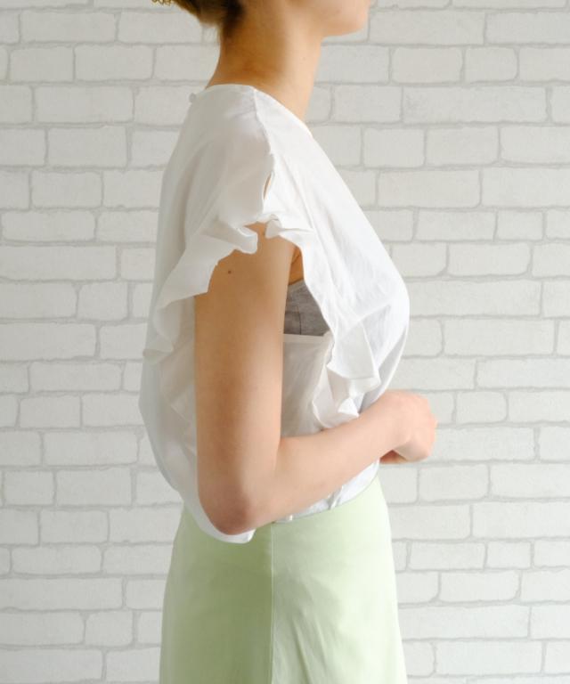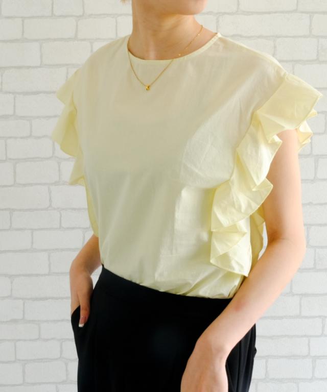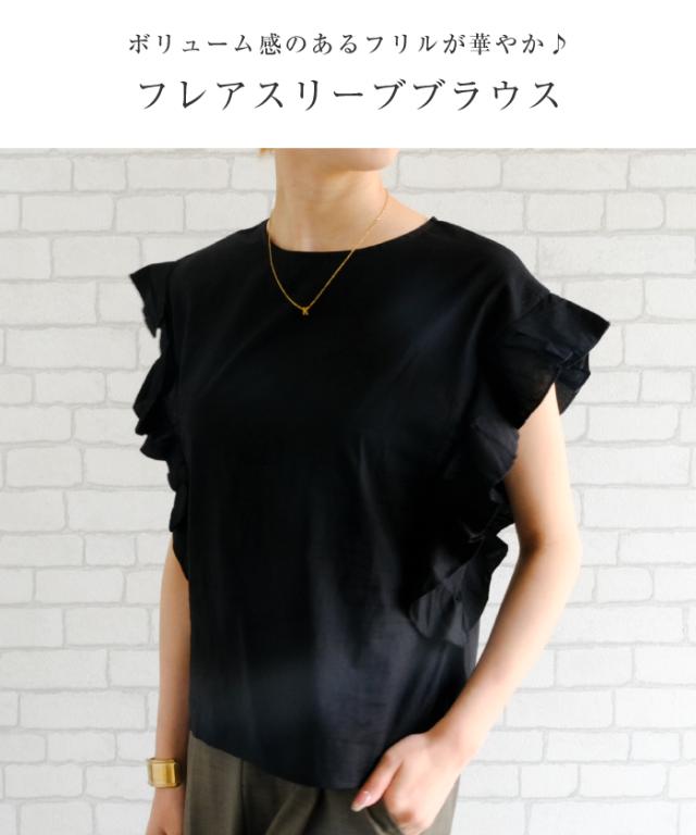 ほんのり女っぽく、大人可愛い印象になるフレア袖ブラウス