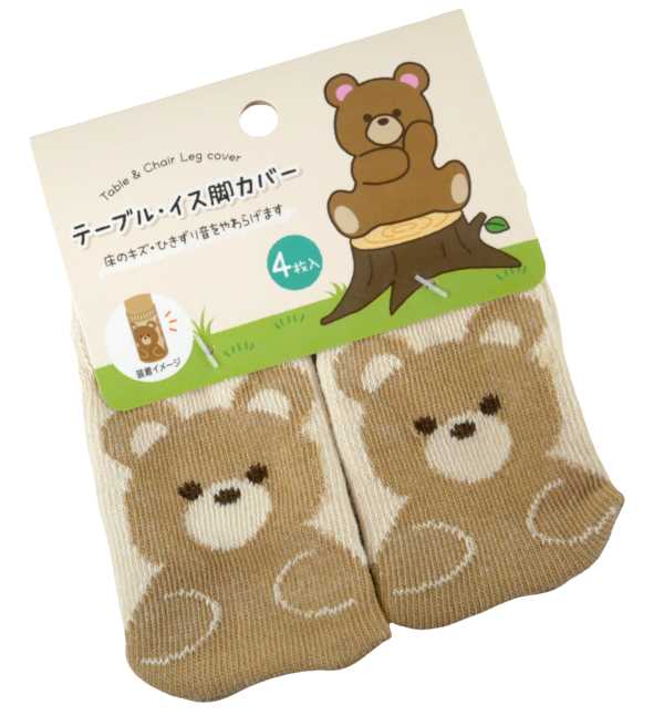 テーブル・イス脚カバー クマ 4枚入 (100円ショップ 100円均一 100均一 100均)