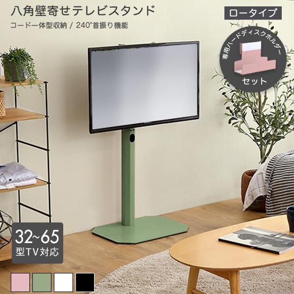 テレビスタンドロータイプ専用 ハードディスクホルダーセット グリーン 全4色 最大高さ104cm 32〜65型TV対応 240度スイング角度調節 コード収納 シンプル