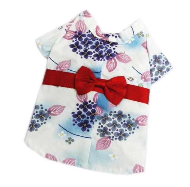 浴衣 ペット用 犬 猫 白ブルーぼかし地紫陽花薄紫葉 SS 綿 抗菌防臭加工 ワンちゃん ゆかた 単品 犬服 ドッグ