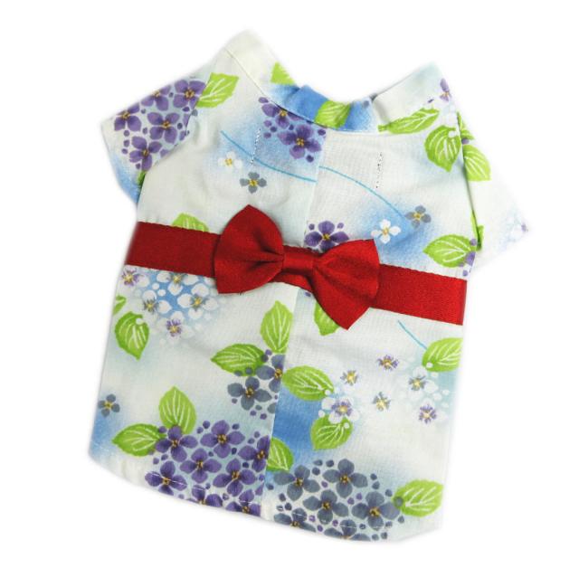 浴衣 ペット用 犬 猫 白ブルーぼかし地紫陽花緑葉 SS 綿 抗菌防臭加工 ワンちゃん ゆかた 単品 犬服 ドッグ