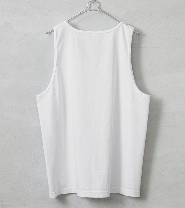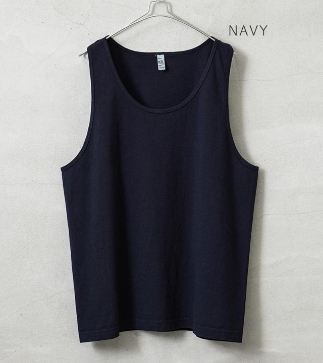 ロスアパ」こと「ロサンゼルスアパレル」から6.5オンスの重量感と丈夫さを併せ持つタンクトップが登場です。良質なコットン100%天竺に、形にしてから染める事で最初から肌になじむ柔らかな風合いと、1点1点違う表情になり唯一無二のアイテムになる製品染め(ガーメントダイ)を施しました。洗濯縮みにも強く、長く着込むほどに経年による味わいが出てくる一枚です。ゆとり感のあるボックスタイプのシルエットで、首元やアームがかなり大きく採られた作り。USA製らしい80’sのジムスタイルを彷彿とさせるクラシカルな雰囲気です。