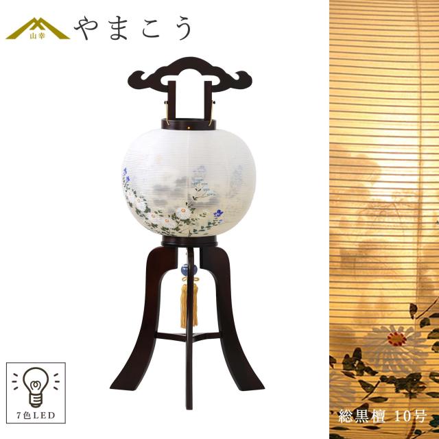 盆提灯 初盆 新盆 仏具 単品 岐阜の誉れ シリーズ こくたん 絹 二重張り 総黒檀 10号 2種類の明かり LEDレインボー & ローソク灯 最高級 木製 大内 岐阜 提灯 仏壇 贈り物