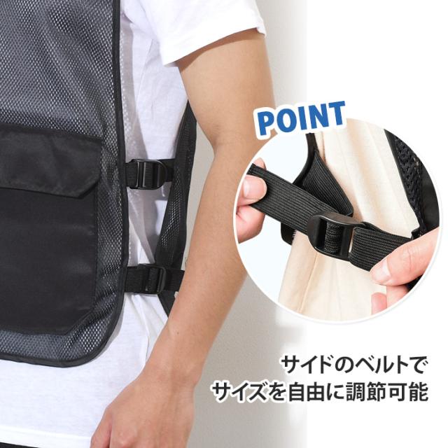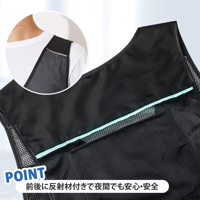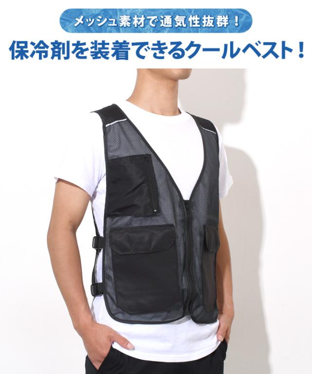 ●メッシュ素材で通気性抜群!保冷剤を装着できるクールベスト!