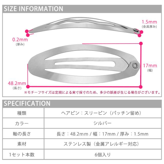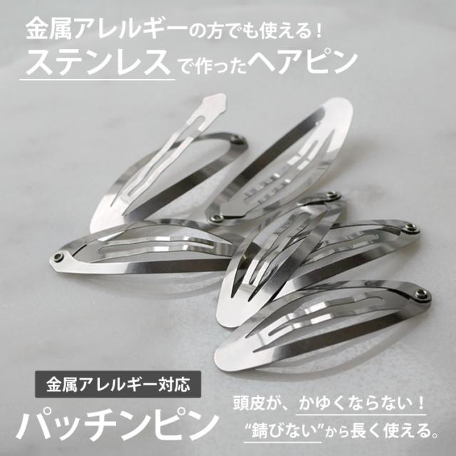 金属アレルギー対応 ヘアピン ヘアパッチン 6点セット ブラック シルバー パッチンピン ステンレス素材 ニッケルフリー シルバー まとめ髪 痒くなりにくい髪留め へアアレンジ ヘアアクセサリー