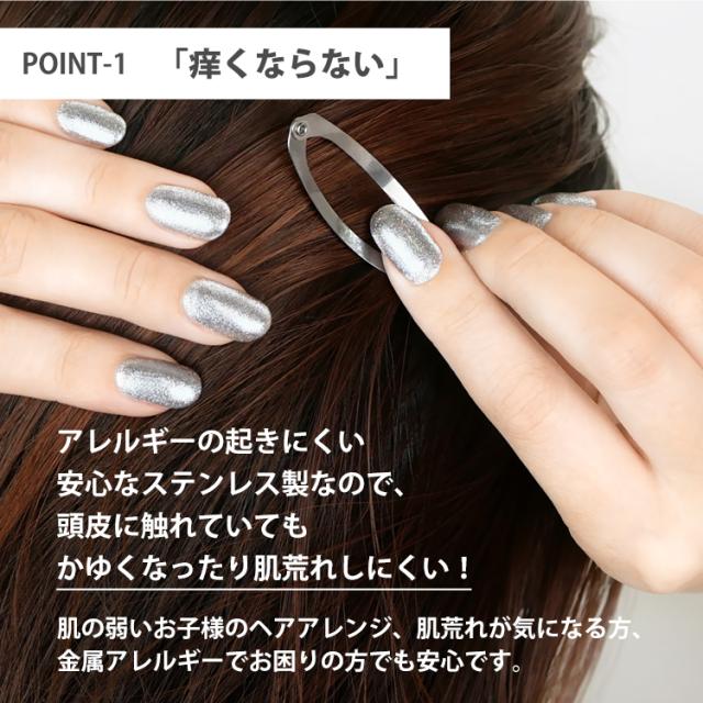 - ステンレス制を探していました。 付け心地も良いですが出来たら滑り止めが付いていたらパーフェクトかな! 前から使っているヘアピンは優しいゴムが付いていて髪から滑り落ちることがないのとしっかりととまっているのでこのようなステンレス制で滑り止めがあったら紹介お願いします。