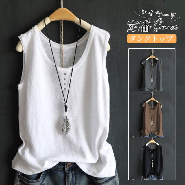『2点ご購入で200円OFF』タンクトップ レディース ロング丈 無地 4色 インナー ノースリーブ カットソー カジュアル おしゃれ 重ね着 レイヤード スポ