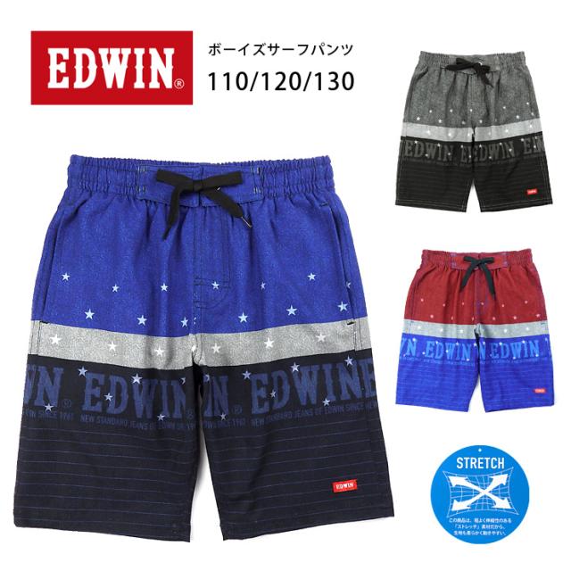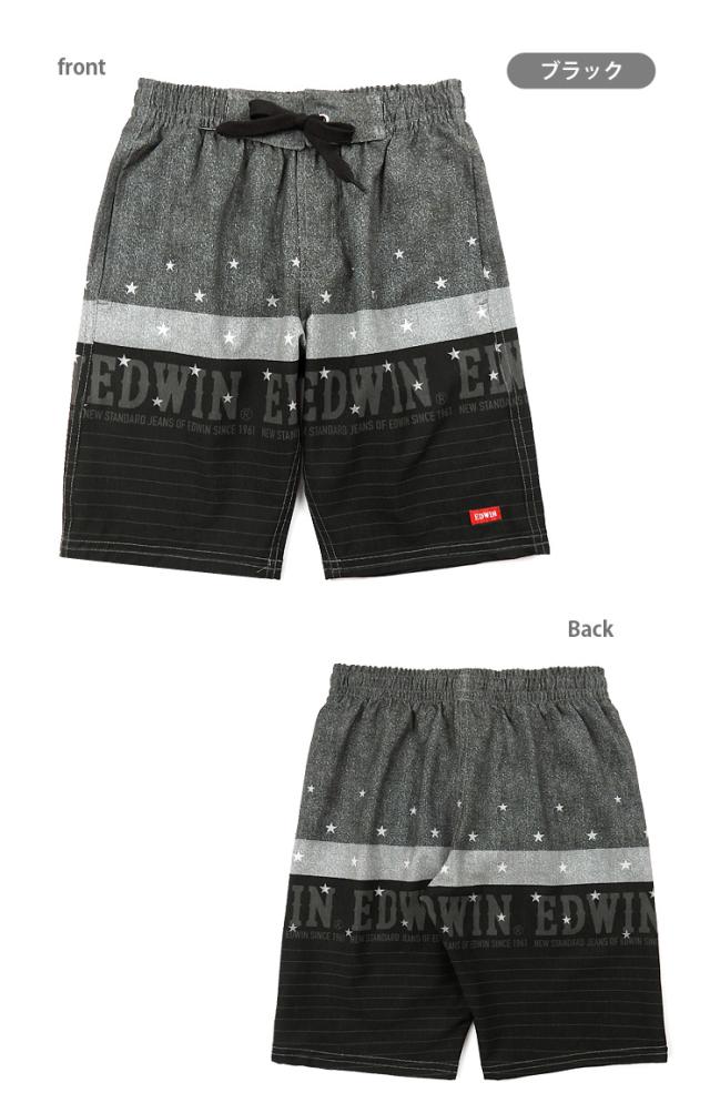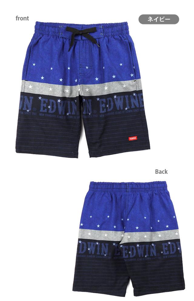【メール便送料無料】EDWIN サーフパンツ水着 キッズ ジュニア 110 120 130 ブラック ネイビー ブルー エドウィン スイムパンツ No.sw3515
