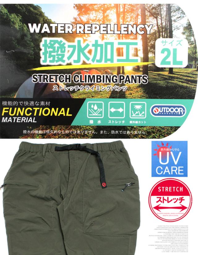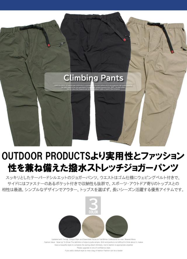 送料無料 アウトドアプロダクツ(OUTDOOR PRODUCTS) ジョガーパンツ メンズ 大きいサイズ 撥水加工 ストレッチ クライミングパンツ イージーパンツ ワークパンツ チノパンツ ウエストゴム 伸縮 ベルト付き キャンプ 登山 ストリート系 ワークマン プラス サイズ