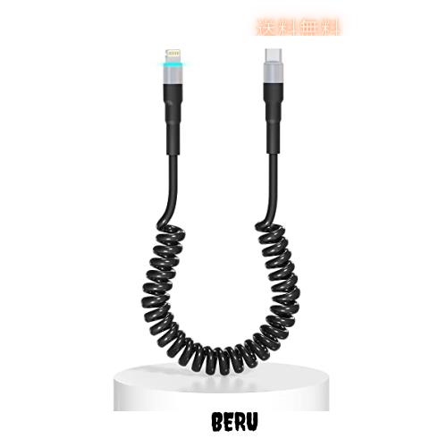 USB C iPhone 充電ケーブル 伸縮コード MFi認証 & CarPlay対応 ライトニング USB C カールコード PD急速充電と高速データ転送ケーブル、U