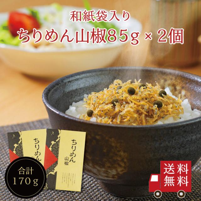 【送料無料】ちりめん山椒85g 2個セット (和紙袋入り) 不二の昆布 ちりめん佃煮 ちりめん山椒 山椒ちりめん つくだ煮 佃煮 惣菜 おにぎり ふりかけ お弁当 朝ごはん ご飯のお供 お土産 御礼 お礼 挨拶 引越 退職 米 お米 メール便 めーる便 送料無料