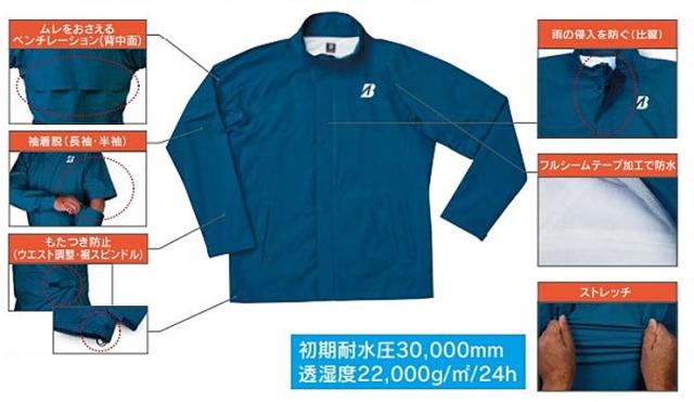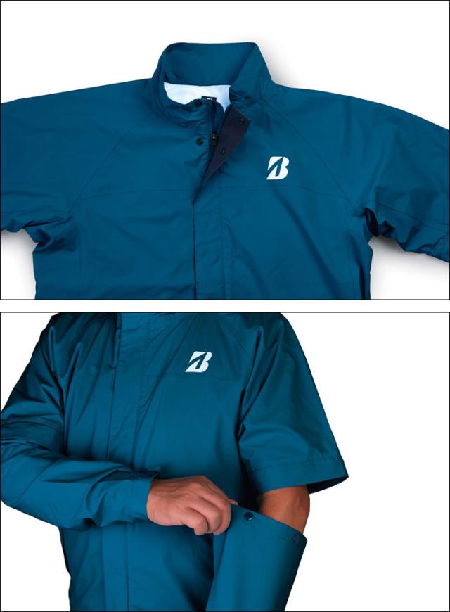 ブリヂストンゴルフのレインウェア『水神」は進化し続ける撥水力が魅力。高い撥水力に加え、蒸れにくさも実現しました。ブルゾンは袖着脱が可能で、半袖と長袖のどちらでも着用が可能です。プレーを妨げないよう細部にまでこだわった機能がついた多機能レインブルゾンです。
