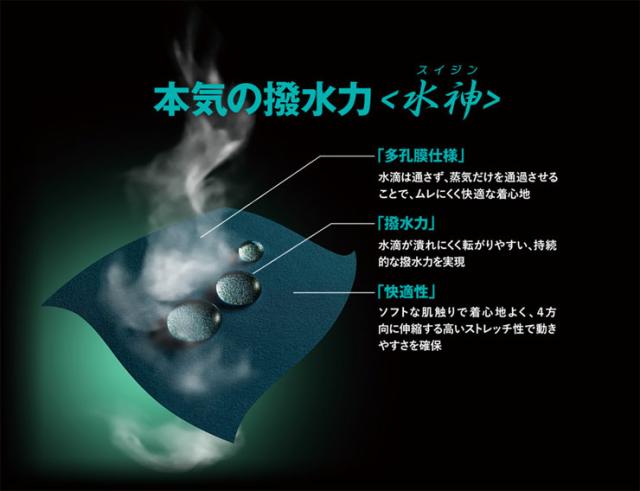 進化し続ける本気の「撥水力」<水神>納得の伸縮性で動きやすいレインウェア