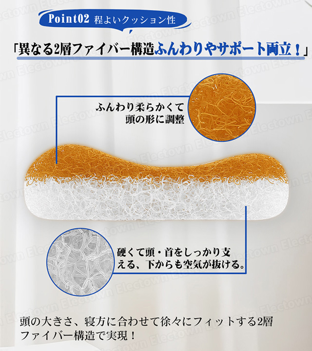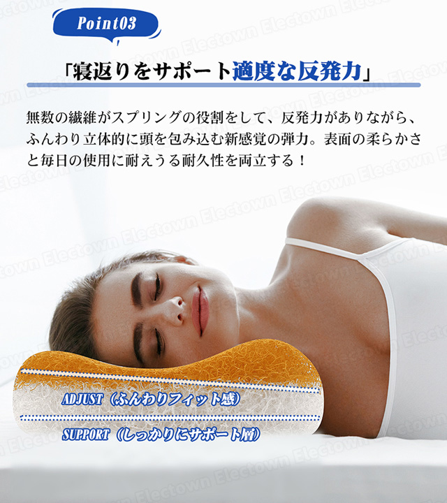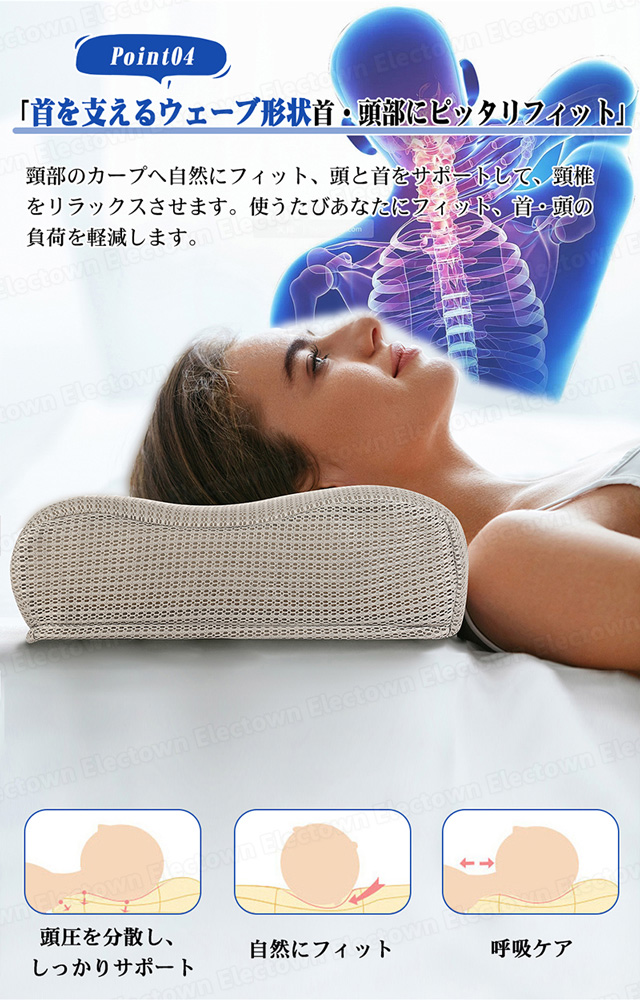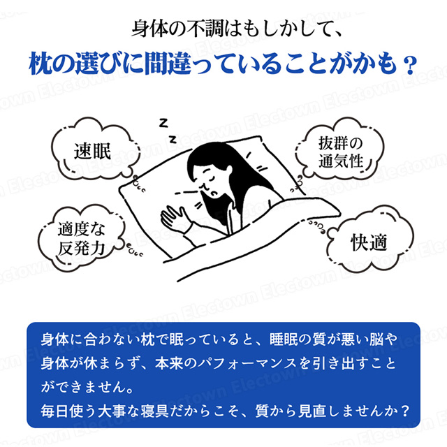 人間工学に基づいた設計が、頭・首の沈み込みを適度に抑え、理想の寝姿勢を実現します。