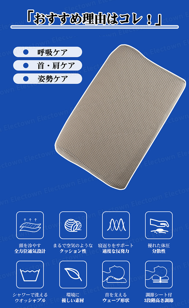 「クーポン配布中」「即納」エアースリープピロー 安眠枕 丸洗える 枕 いびき防止 横向き 枕 肩こり 首こり ストレートネック枕 快眠枕 まくら 洗える 枕 空気を編み込んだ枕 ウェーブピロー メッシュ生地 蒸れない ピロー カバー付き 通気性抜群 父の日 ギフト