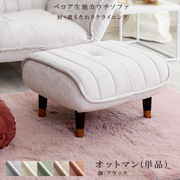 ベロアカウチソファ オットマン単品 (ホワイト&ブラック脚) 全5色 10タイプ 脚を外してスツールにも ポケットコイル くすみカラー かわいい ソファー