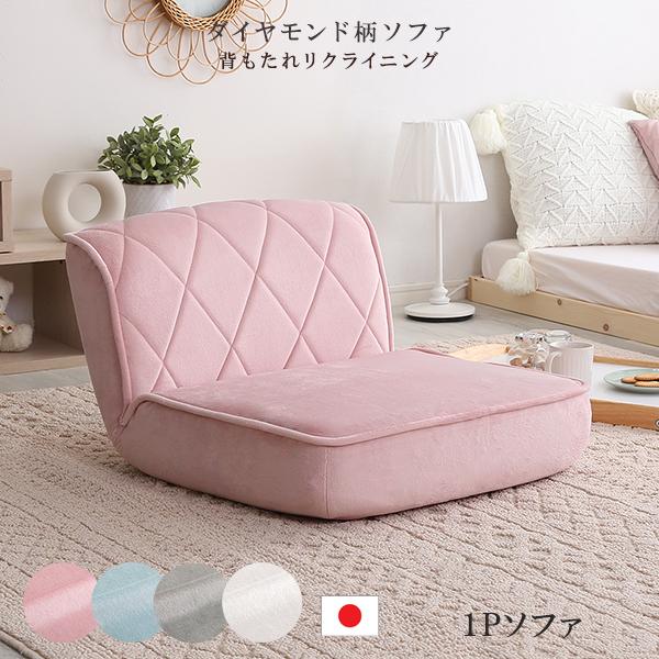 ダイヤモンドステッチソファ 1人掛け (ピンク) 全4色 ふんわり起毛生地 14段階リクライニング ポケットコイル パステルカラー ローソファ 座椅子 シンプル かわいい ソファー