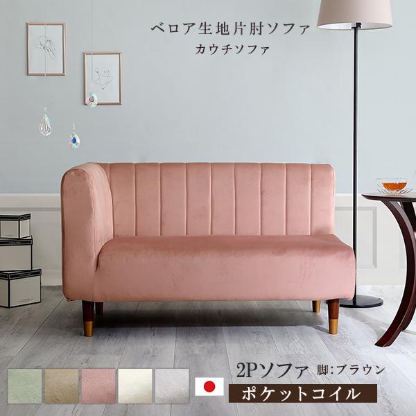片肘2人掛けソファ (ピンク&ブラウン脚) 全5色 10タイプ クッション性の高いポケットコイルシ ンプル カウチソファ くすみカラー かわいい ソファー