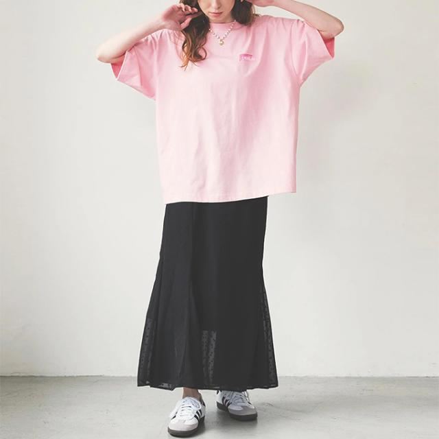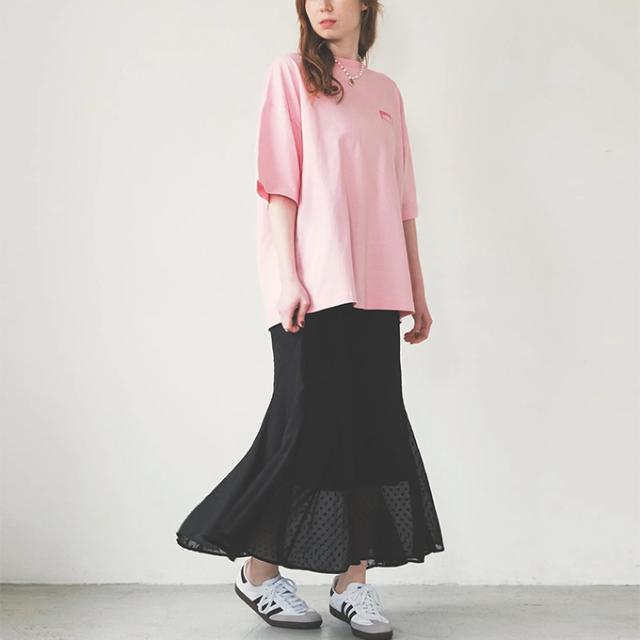 タックインもアウトもどちらの着こなしも決まるワイドシルエット、タイトなデニムスカートやマーメイドスカートを合わせてレディに着こなすのもおすすめ!