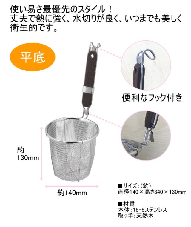 ダイアナシリーズ 木柄うどん揚げ 平底 L-0025 日本製 18-8ステンレス うどん揚げ ざる ザル てぼ 振りざる 揚げざる 平底 麺 ラーメン うどん 湯切り すくう 木柄 キッチン用品 調理器具