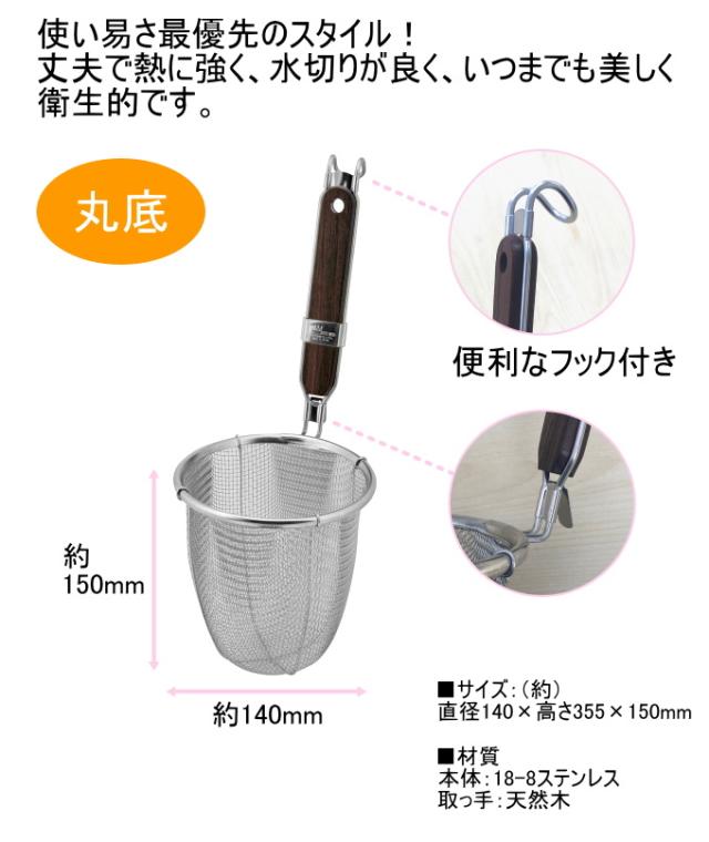 ダイアナシリーズ 木柄うどん揚げ 丸底 L-0035 日本製 18-8ステンレス うどん揚げ ざる ザル てぼ 振りざる 揚げざる 丸底 麺 ラーメン うどん 湯切り すくう 木柄 キッチン用品 調理器具