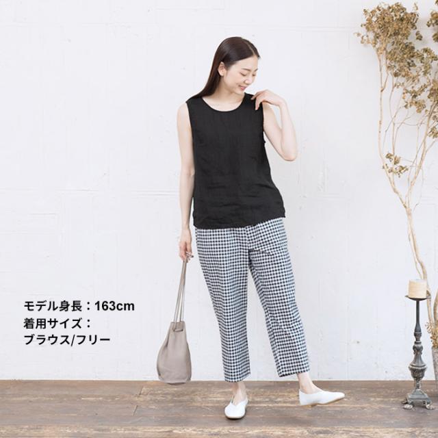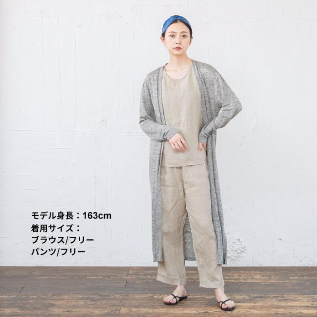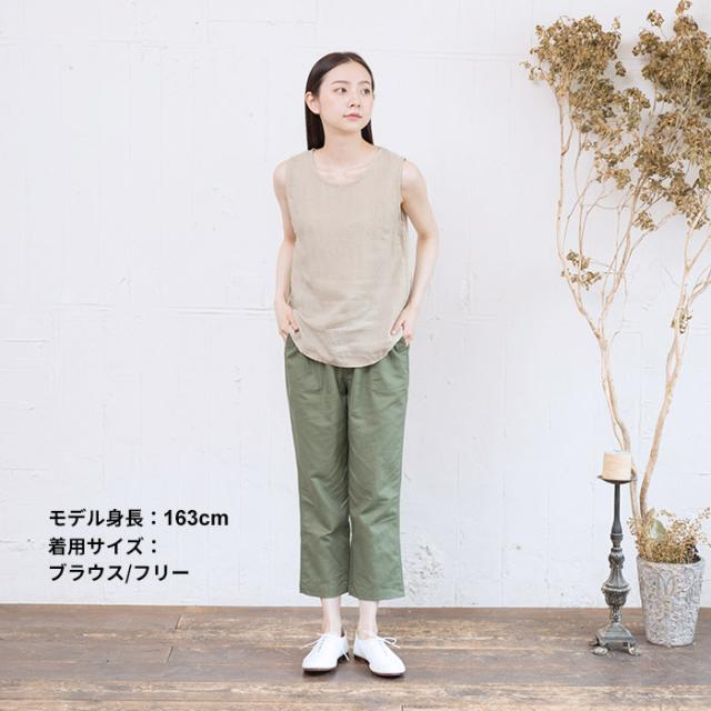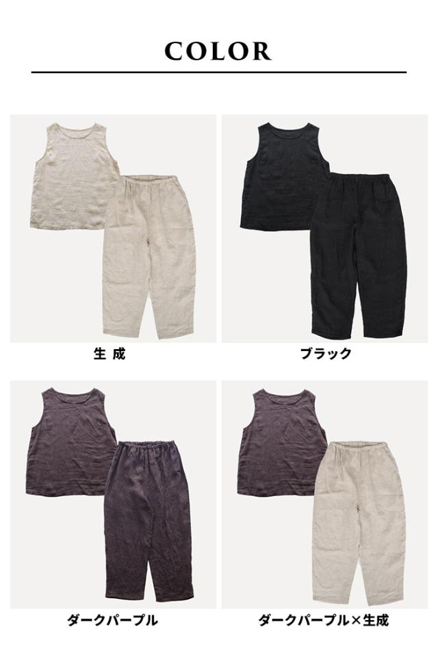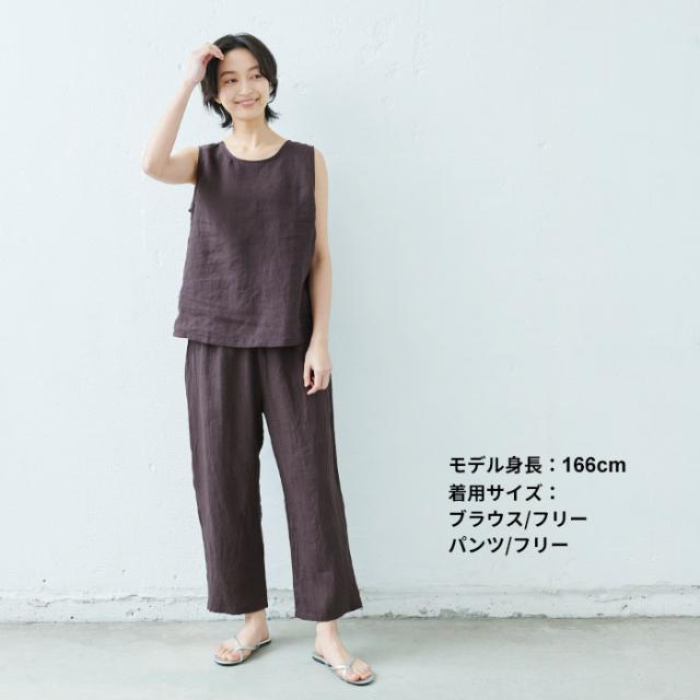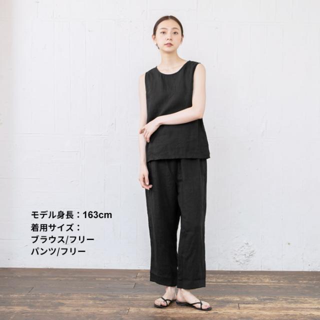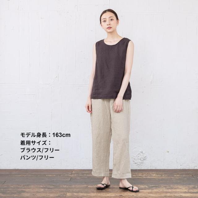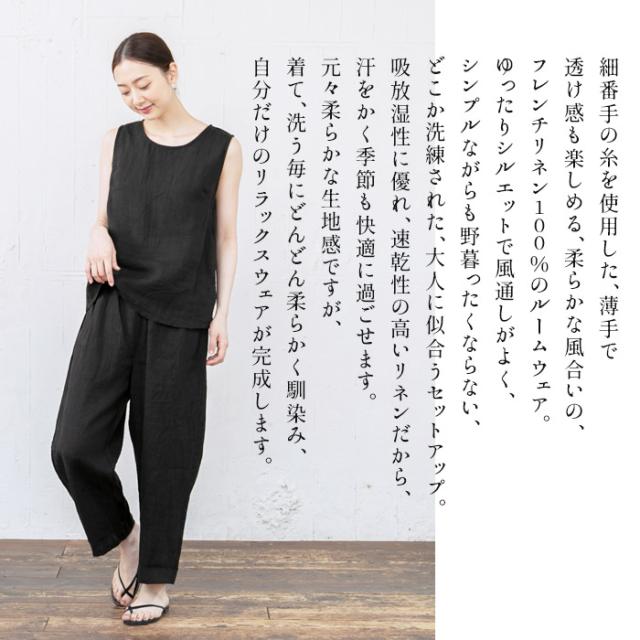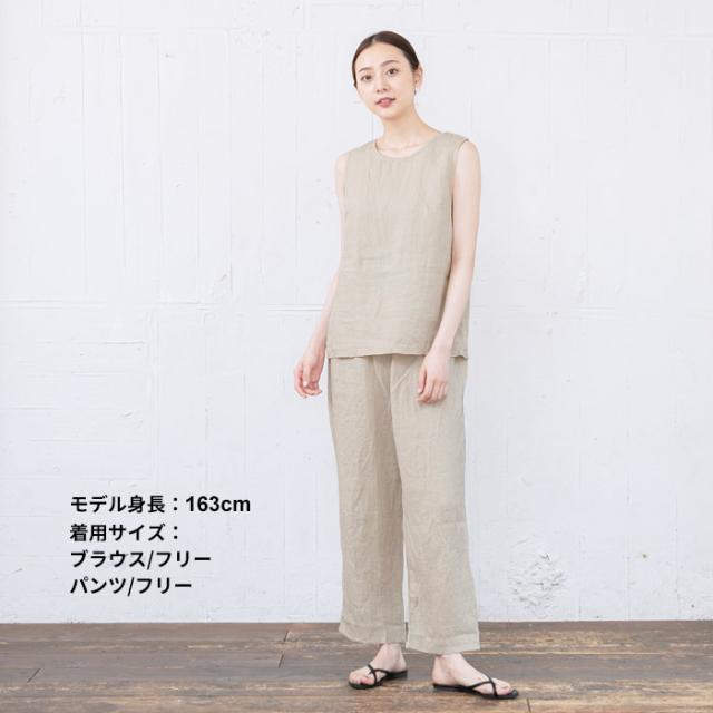 フレンチリネン100% ルームウェアセット ノースリーブブラウス + ペチパンツ
