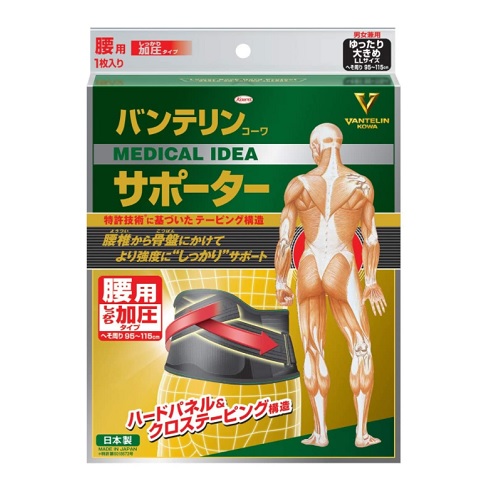 バンテリンコーワサポーター 腰用しっかり加圧タイプ 男女兼用 ゆったり大きめサイズ ブラック 1枚