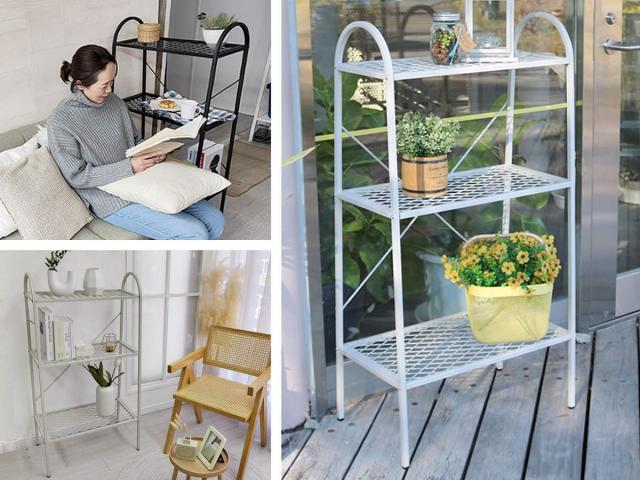 棚板は丈夫なアイアンメッシュ素材なので、プランターへの日当たりや風通しもよく、頑丈かつ軽量で扱いやすいのもポイントです。