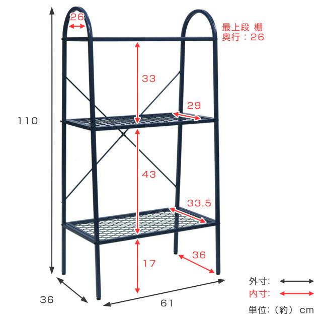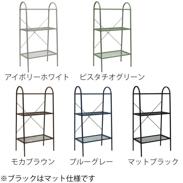 オープンスチールラック 3段 メッシュ 撥水 ガーデン ( オープンラック 棚 収納 本棚 屋外OK ディスプレイ ラック 花台 アイアン 錆びにくい )