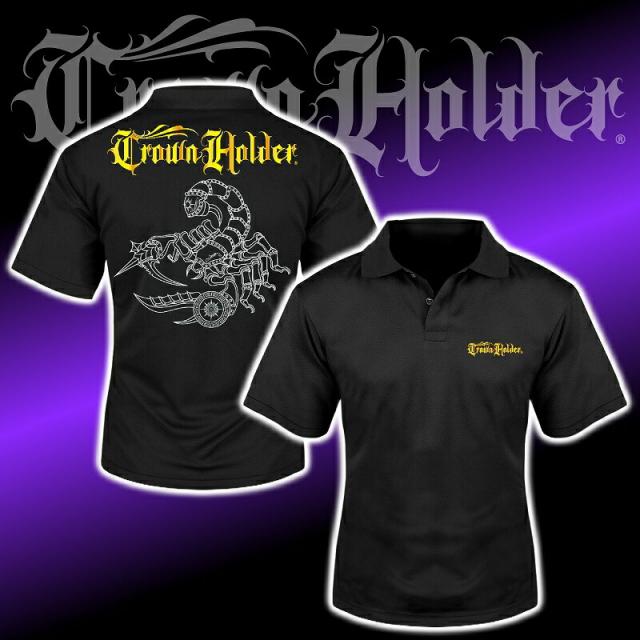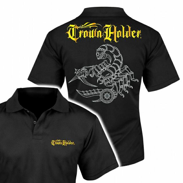 半袖 ポロシャツ サソリ柄 黒白 服 CH-014 CROWN HOLDER クラウンホルダー ギャング ダンス B系 HIPHOP系 チカーノ メンズ ファッション ヤクザ ヤンキー オラオラ系 派手