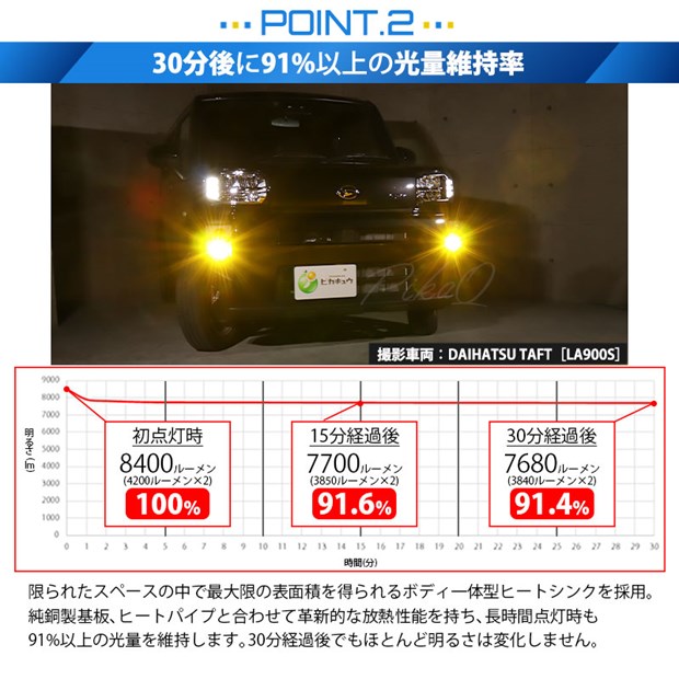 ※ルーメン値は、バルブ2個(車両一台分)の値を示しています。
