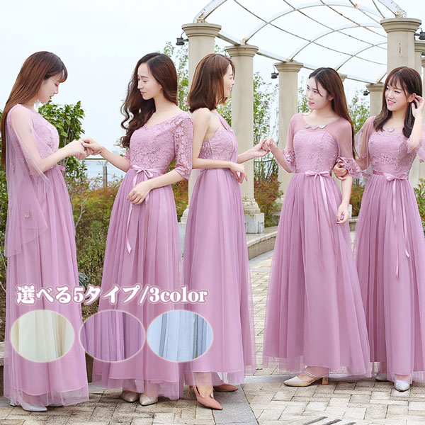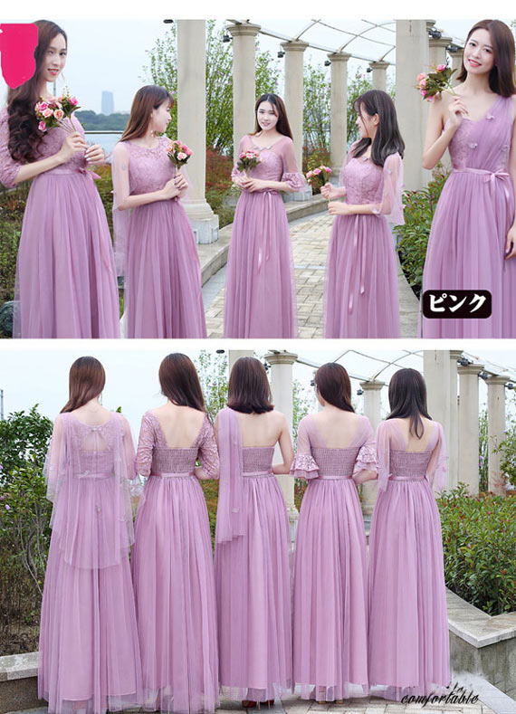 パーティードレス お揃いドレス ブライズメイド服 花嫁 ウェディング ピンク シャンパン グレー 介添えドレス Aライン ロングドレス プリンセスドレス 結婚式ad171c0c0m5