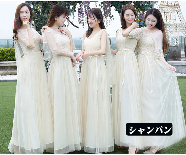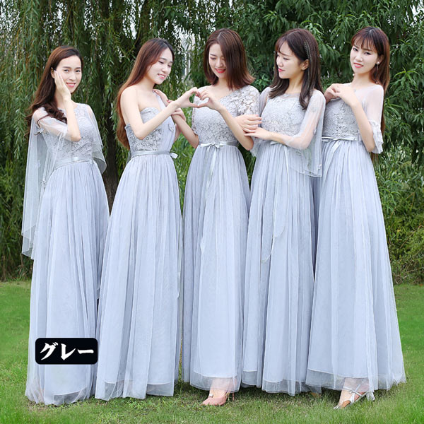 パーティードレス お揃いドレス ブライズメイド服 花嫁 ウェディング ピンク シャンパン グレー 介添えドレス Aライン ロングドレス プリンセスドレス 結婚式