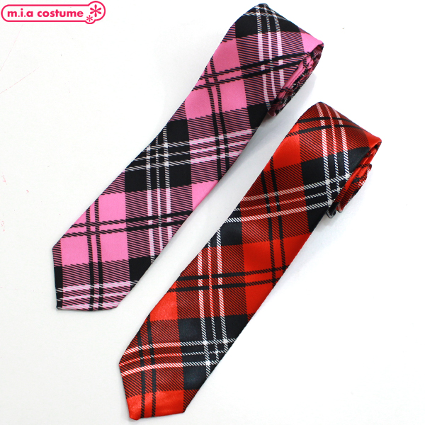 1309F■【送料無料・即納】B品 ネクタイ 細身チェック柄 色:ピンク/赤 レッド ブラック 黒 イギリス スクール カジュアル オシャレ ハロウィン 海外 大人 学生