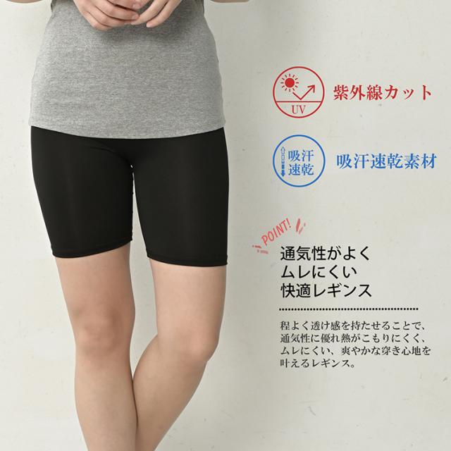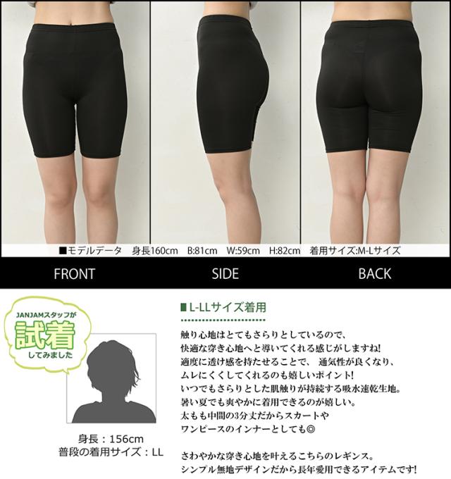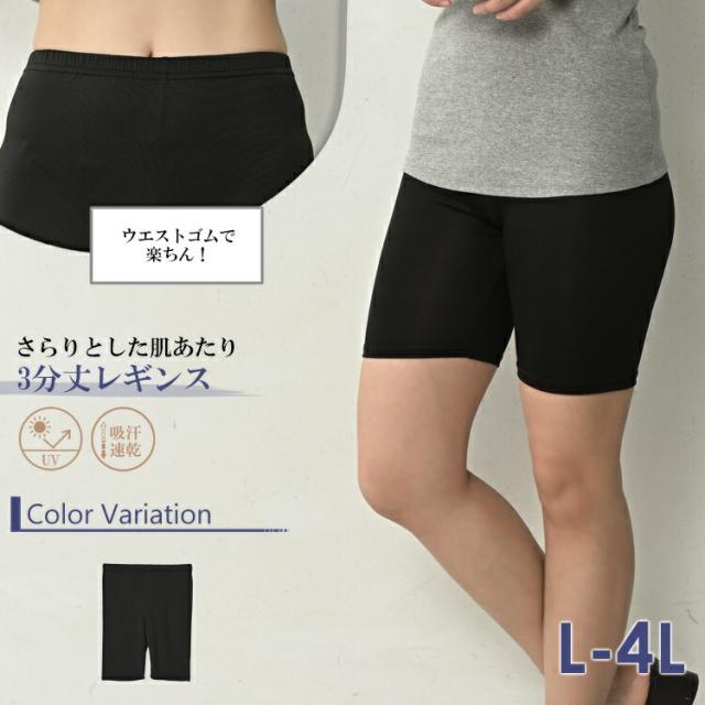 大きいサイズ レディース さらさらレギンス 3分丈 メール便対応 吸汗速乾 UVカット レッグウェア インナー L-LL/3L-4L ゆったりサイズ ぽっちゃり女子 プラスサイズ