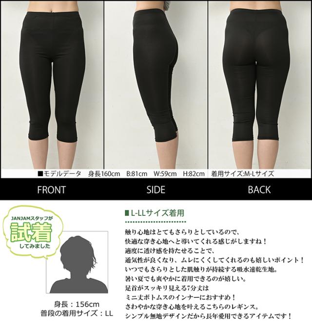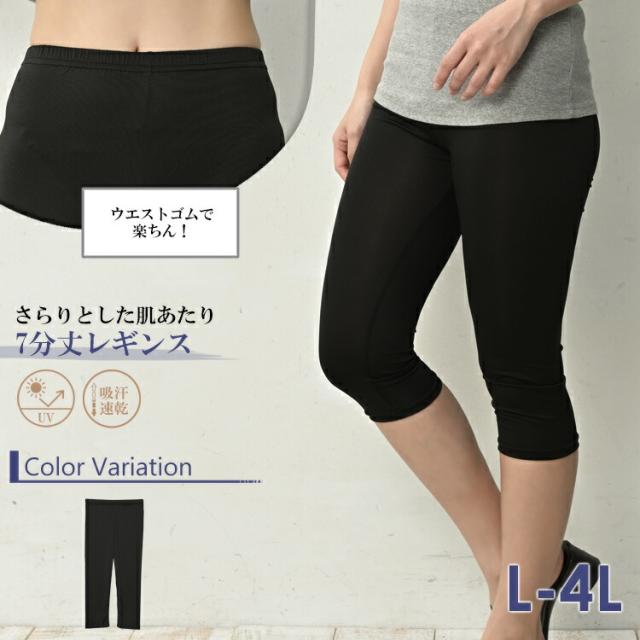 大きいサイズ レディース さらさらレギンス 7分丈 メール便対応 吸汗速乾 UVカット レッグウェア インナー L-LL/3L-4L ゆったりサイズ ぽっちゃり女子 プラスサイズ