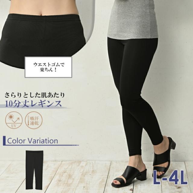 大きいサイズ レディース さらさらレギンス 10分丈 メール便対応 吸汗速乾 UVカット レッグウェア インナー L-LL/3L-4L ゆったりサイズ ぽっちゃり女子 プラスサイズ