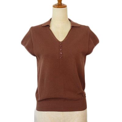 【中古】ニューヨーカー NEWYORKER カットソー ニット スキッパー 半袖 コットン L 茶 ブラウン レディース